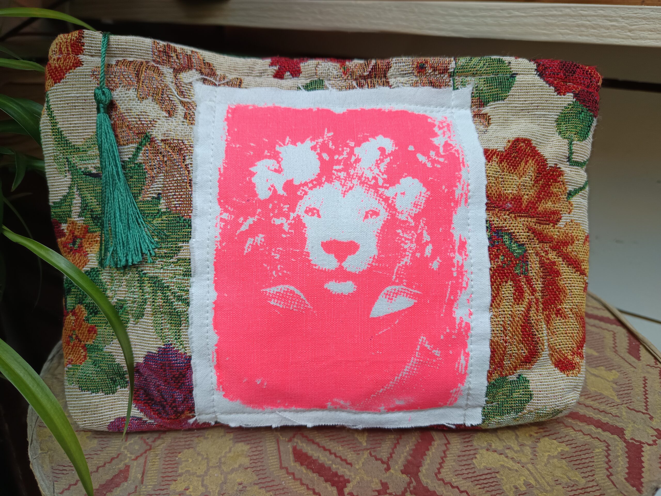 Pochette écrue motifs fleurs – Lion -T038 – M