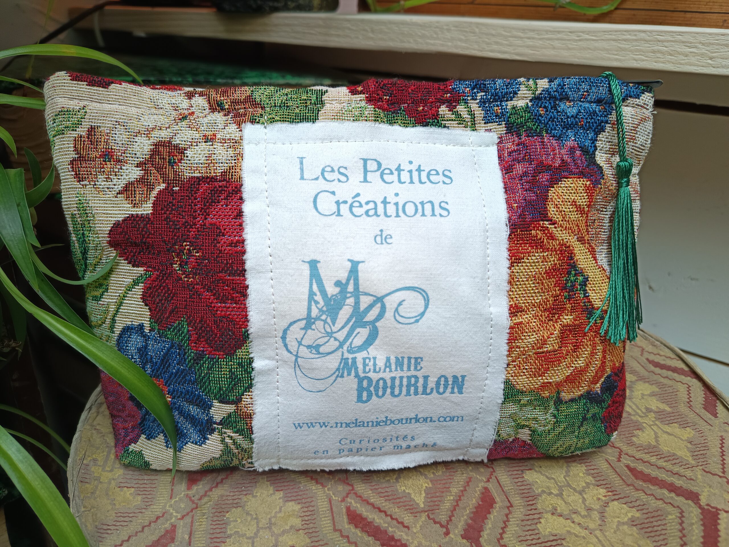 Matières : Pochette en juco (coton + jute), tissu vintage